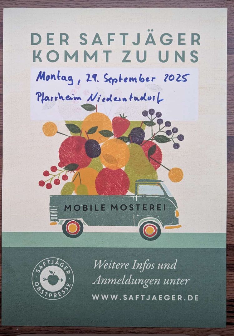 📢 Der Saftjäger kommt! 🍎🍐🍒 Mobile Mosterei in Niedertudorf 📅 Montag, 29. September 2025 📍[…]