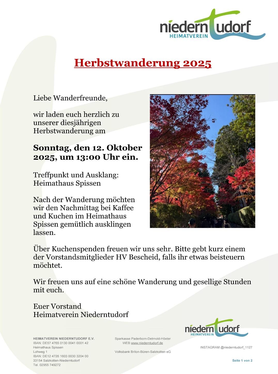 🎉 50 Jahre Volkstanzkreis Niederntudorf 🎉 📅 Sonntag, 21. September 2025⏰ ab 11:30 Uhr📍 Heimathaus Spissen[…]
