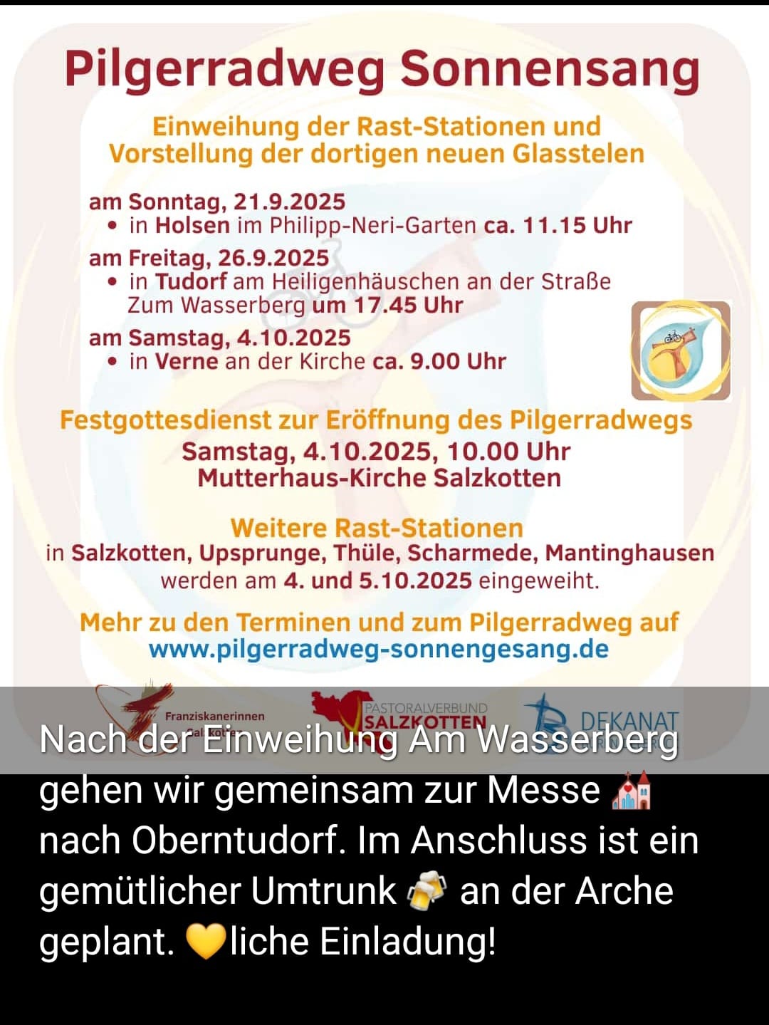 📅 Pilgerradweg Sonnengesang – Einweihung der Rast-Stationen 🗓 Freitag, 26.9.2025 📍 Tudorf, am Heiligenhäuschen an der Straße Zum Wasserberg 🕕 17:45[…]