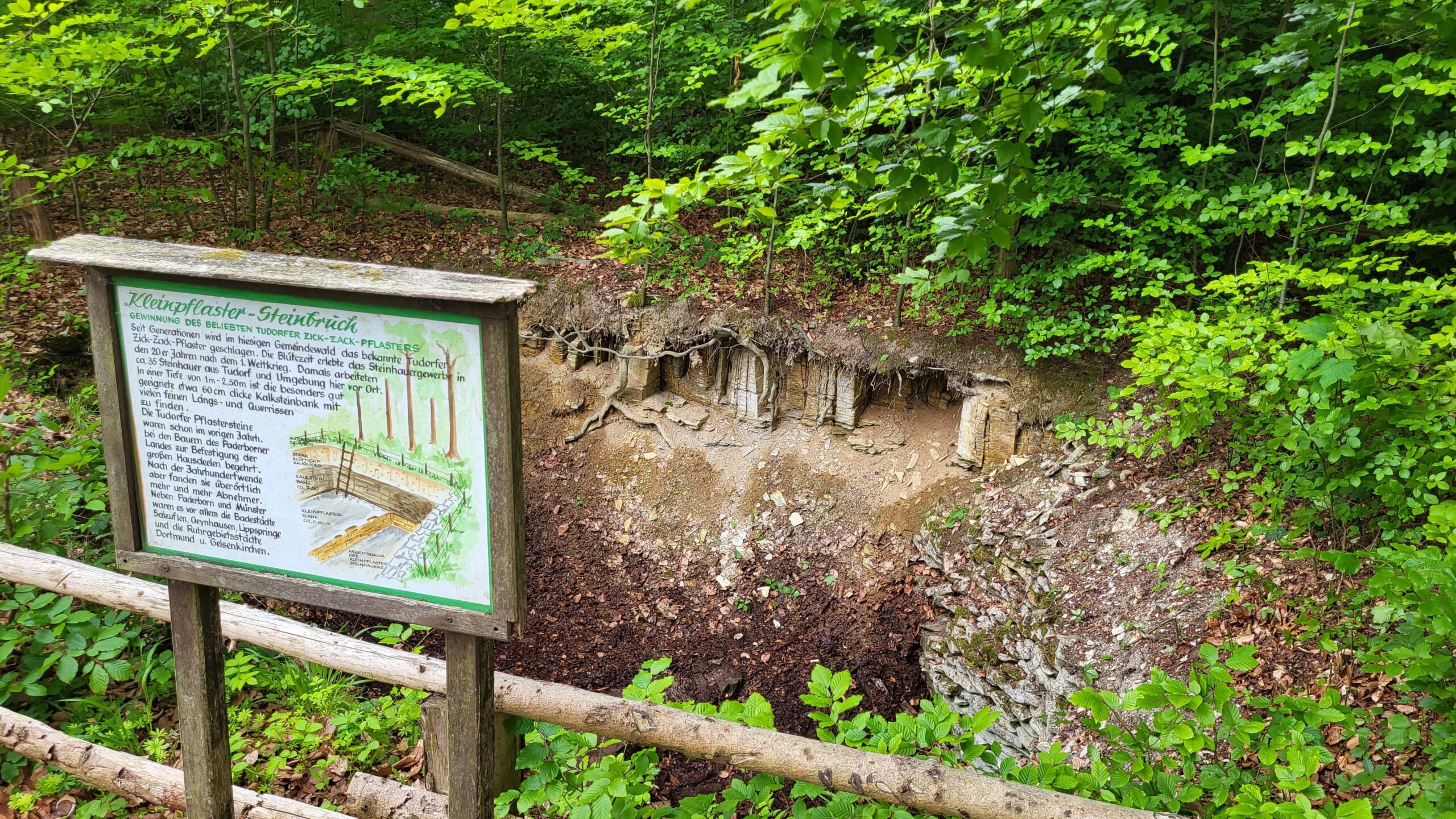 Damals wurden die Steine auch aus dem Boden am Berg „Burscheid“ gewonnen, oberhalb des Steinbruches. Dafür wurden Löcher in den Boden gegraben, um an die stabileren tieferliegendfen Steine zu gelangen, was viel Arbeit bedeutete.
