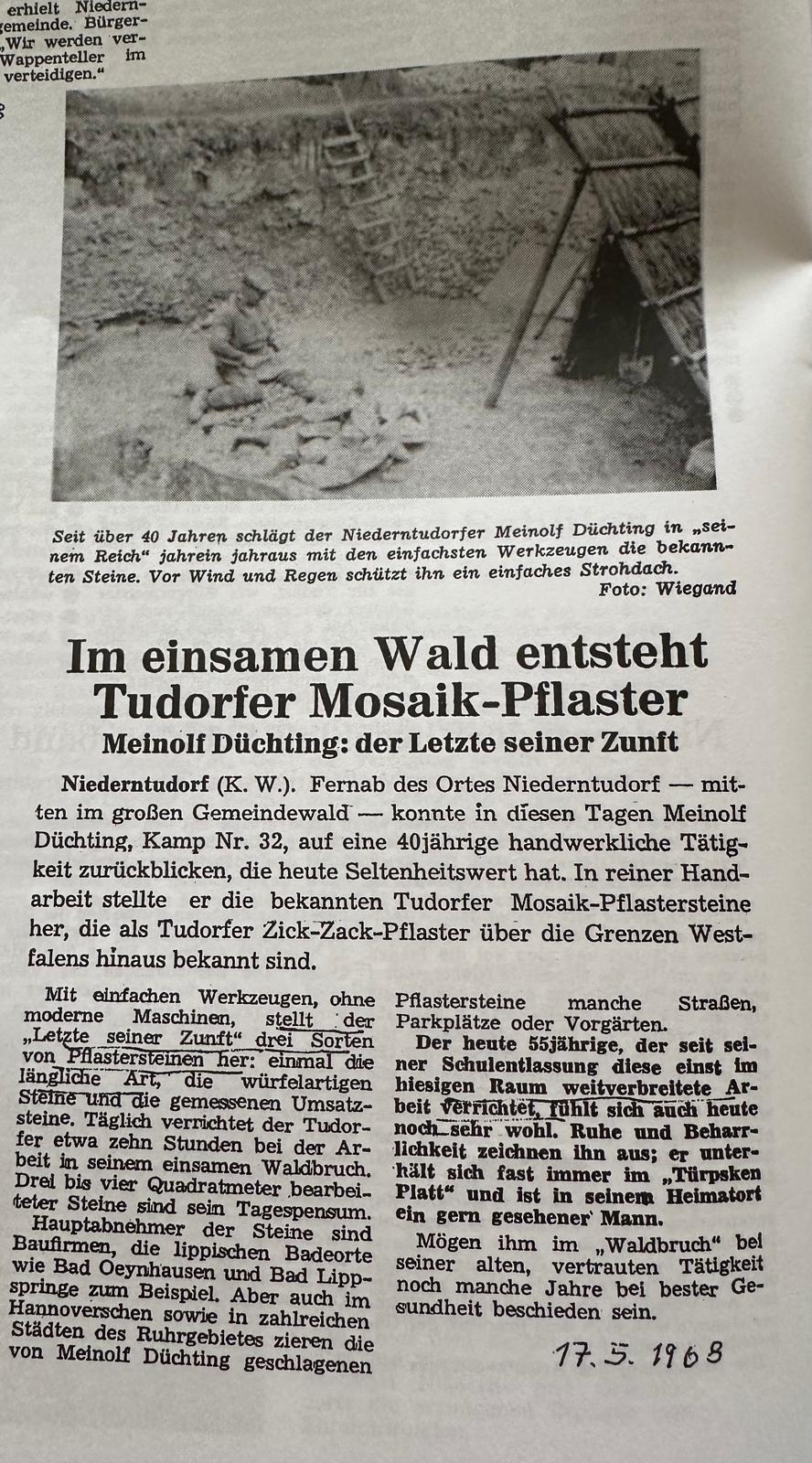Dieses historische Natursteinpflaster wurde damals für Bauernhausdielen, Herdstellenbereiche und auch Gehwege genutzt. Es sehr beliebt und ist z.B. im Staatsbad Bad Oeynhausen im Kurparkbereich und im Eingangsbereich vor Villen verlegt worden. Die Steine sind rechteckig (ca. 4x15cm) und einen gelblich-warmen Farbton. Das Tudofer Pflaster wird auch heute noch gerne verwendet.