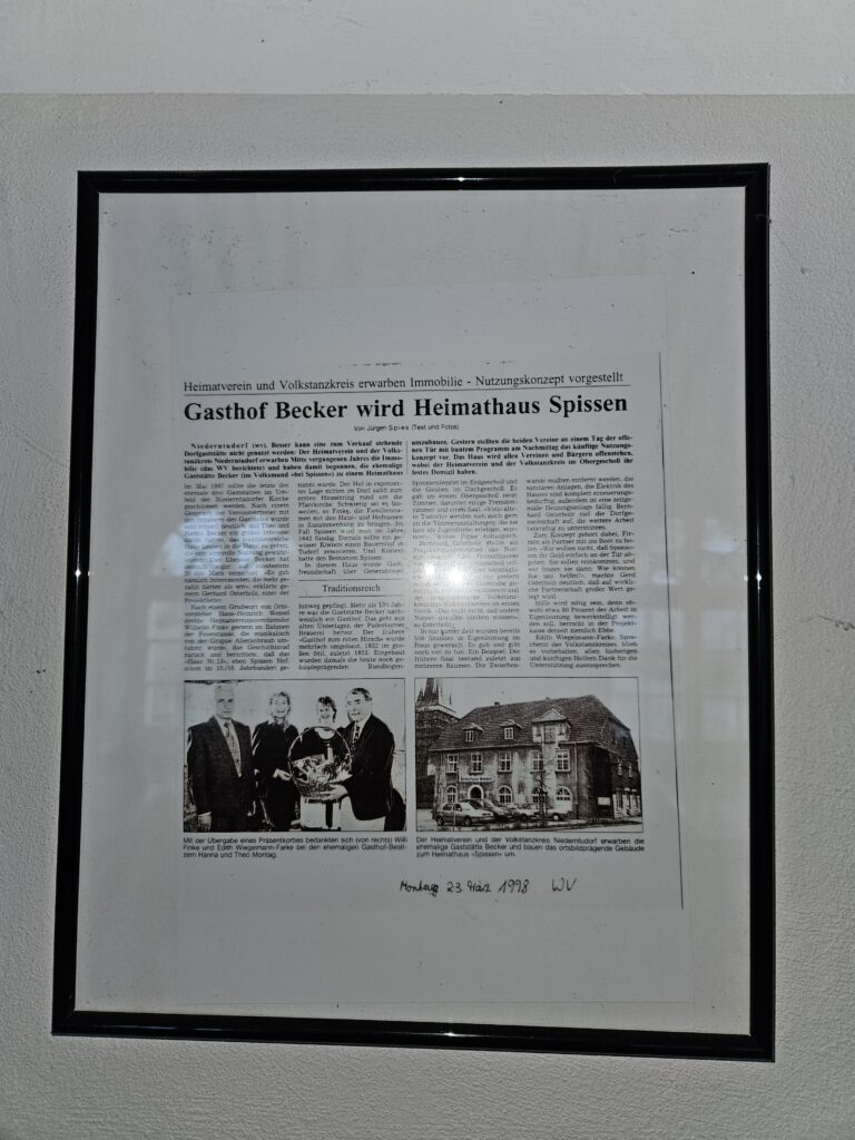 Ende der 90er wurde neben den genannten Aufgaben zusätzlich das Heimathaus Spissen übernommen und bis heute in zahlreichen Arbeitseinsätzen gehegt und gepflegt.
