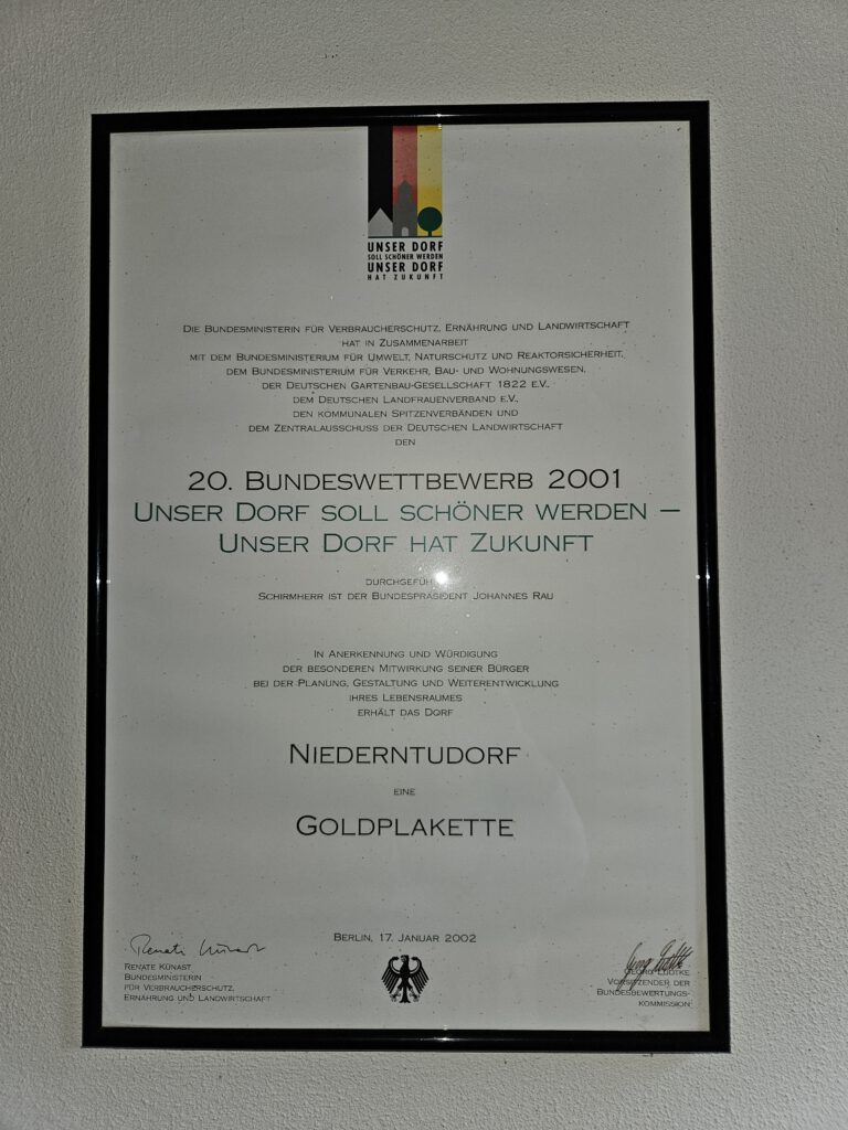 Ein bedeutender Erfolg war die Auszeichnung als „Bundesgolddorf“ im Jahr 2001. Dieser Titel würdigt die nachhaltigen Bemühungen des Vereins und seiner Akteure, die Umwelt zu schützen, die Lebensqualität zu verbessern und das Gemeinschaftsgefühl zu stärken. Der Verein hat maßgeblich dazu beigetragen, Tudorf zu einem Ort zu machen, der durch seine Natur, seine Kultur und seine Gemeinschaft beeindruckt.