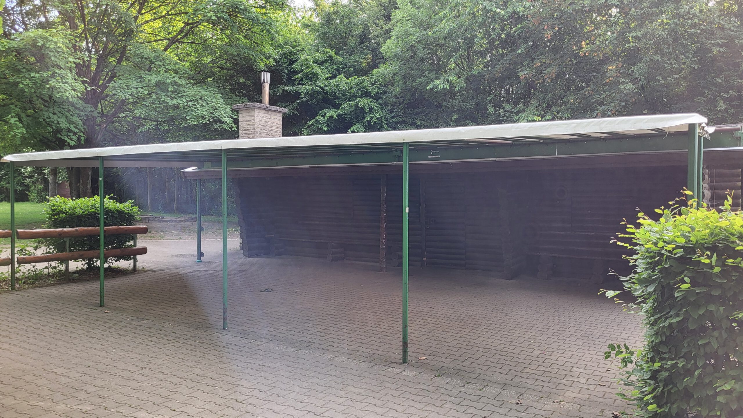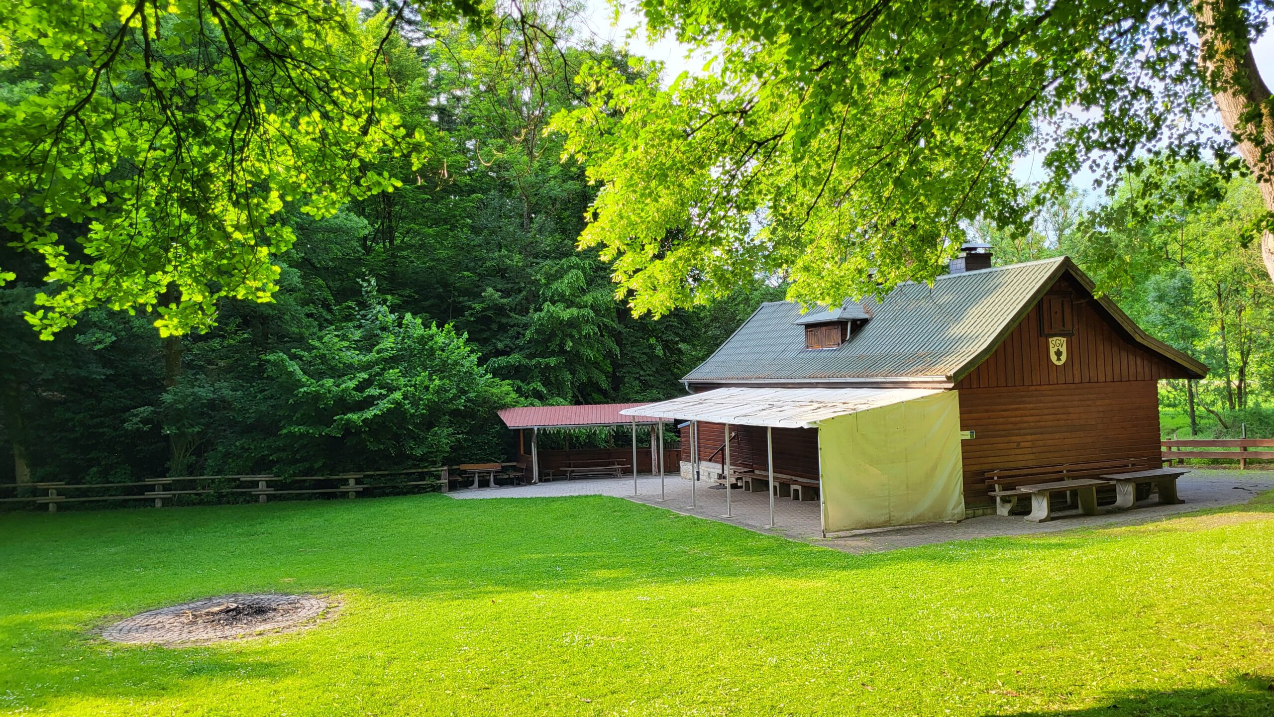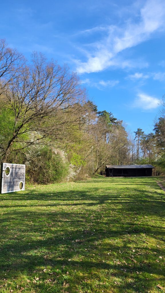 Die Hütte sist ca. 50m2 groß. Wenige Meter weiter gibt es eine Toilette. Das Gelände beinhaltet einen schönen Rssenplatz, auf dem bis zu 20 Igluzelte stehen können. Auch einen überdachten Grill, eine großzügige Feuerstelle und auch eine Torwand gibt es. Es stehen mehrere Bierzeltgarnituren zur Verfügung.