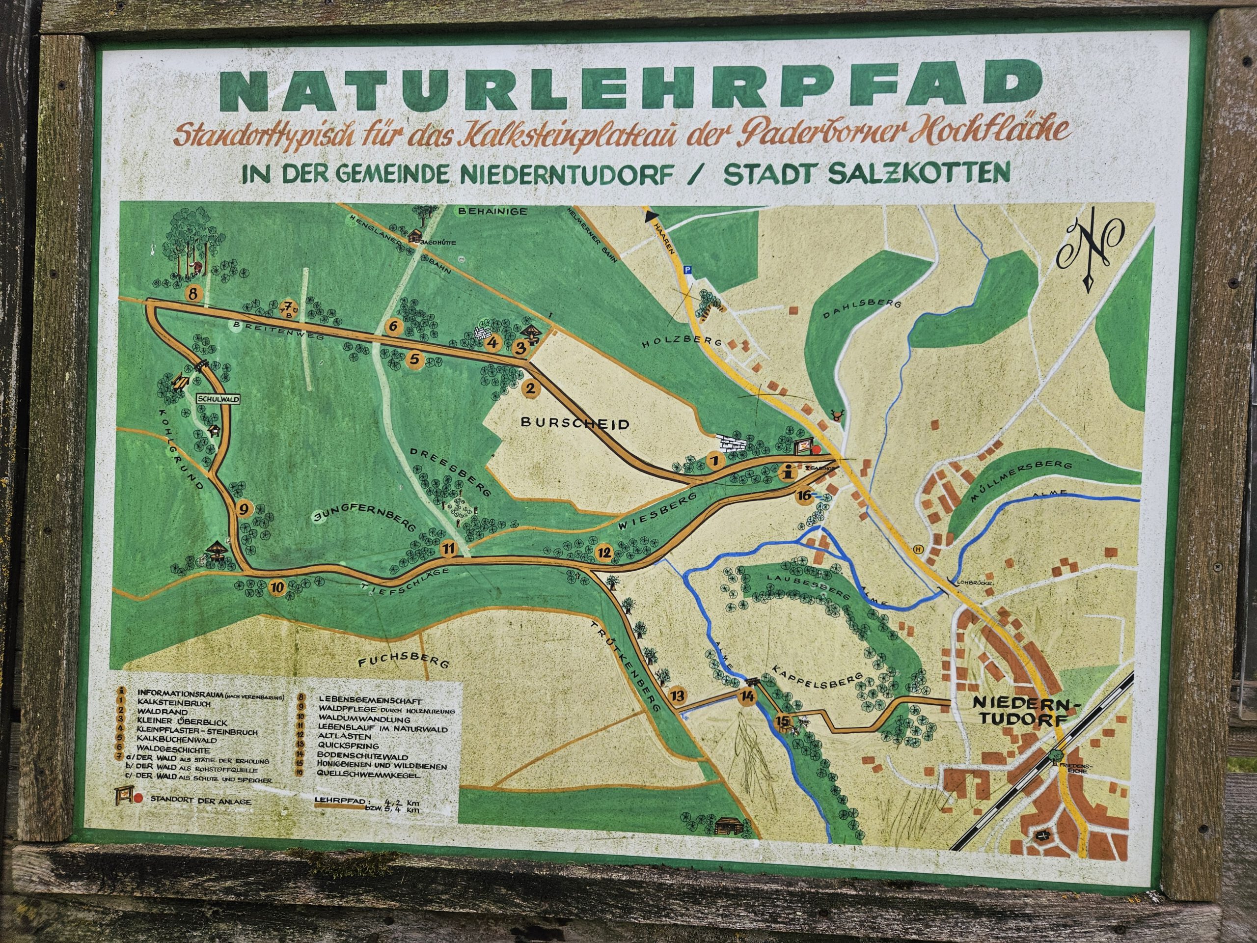 Die Rundwanderung führt im südöstlichen Ortsteil Niederntudorf der Sälzerstadt Salzkotten durch ein schönes Waldgebiet. Hier gibt es zahlreiche naturkundliche Sehenswürdigkeiten am Wegesrand zu bestaunen, die auf den vielen Informationstafeln des Waldlehrpfades beschrieben sind.